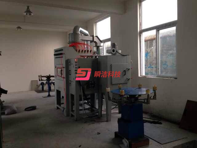 2、操作時(shí)將工件放在兩邊工作旋轉(zhuǎn)臺(tái)上,固定好,噴砂作業(yè)自動(dòng)完成,十分簡(jiǎn)單方更。