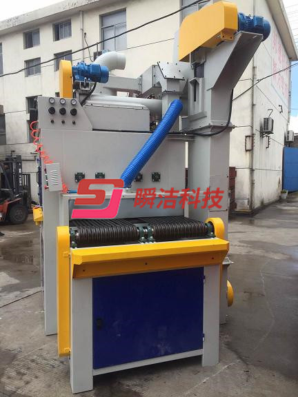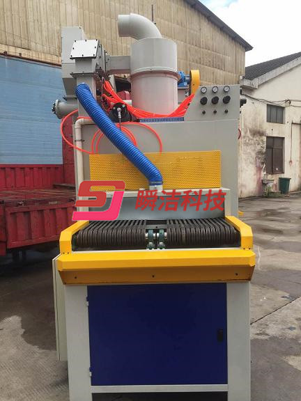 2、操作時將工件放在輸送帶上、噴砂作業(yè)自動完成,十分簡單方更。